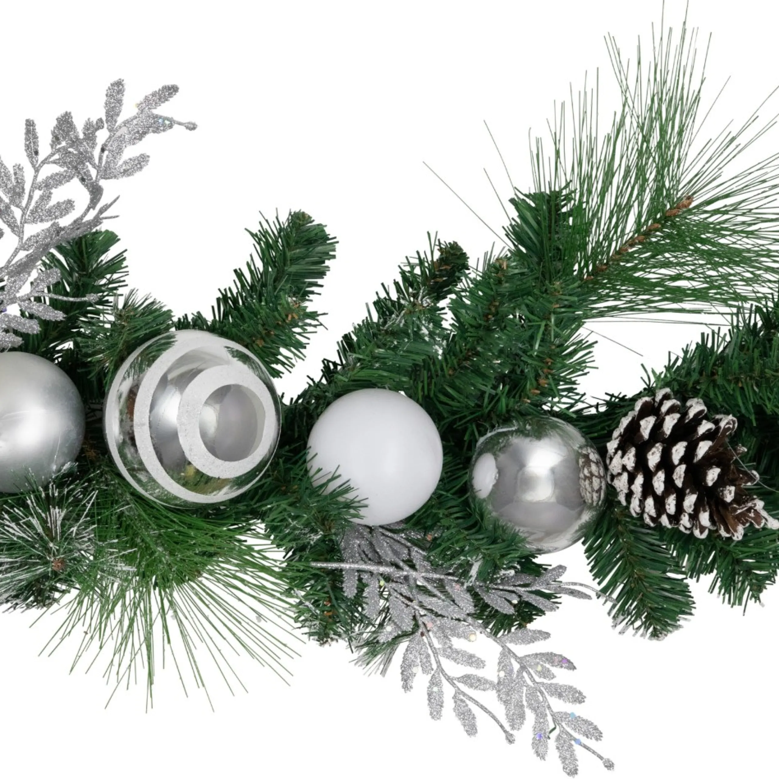 Traditional Pine Garland*Northlight 6′ Green Pine Needle Garland With Pinecones And Striped Christmas Ornaments, Unlit
