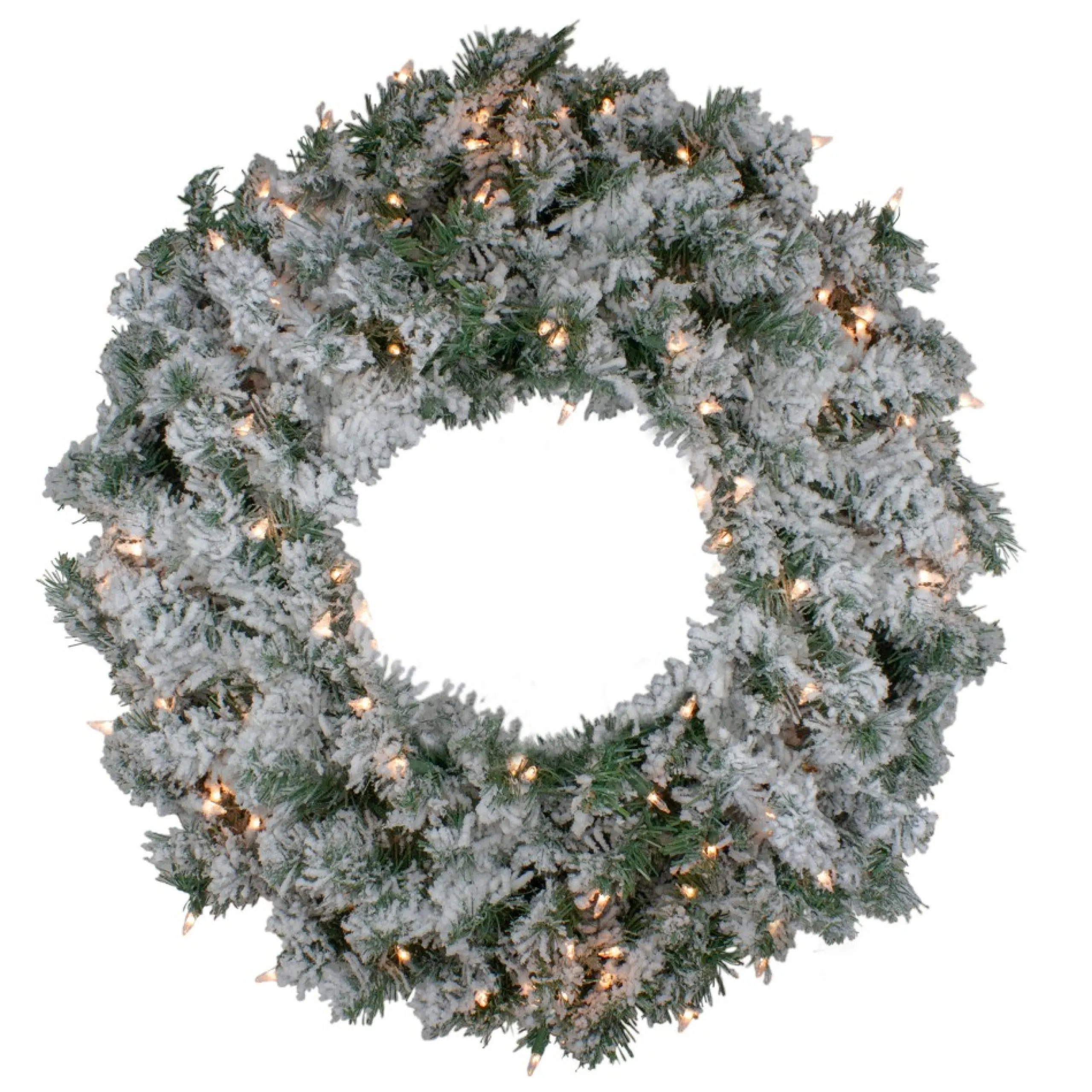 Traditional Pine Wreaths*Northlight Pre-Lit Flocked Victoria Pine Artificial Christmas Wreath – 30-Inch, Clear Lights