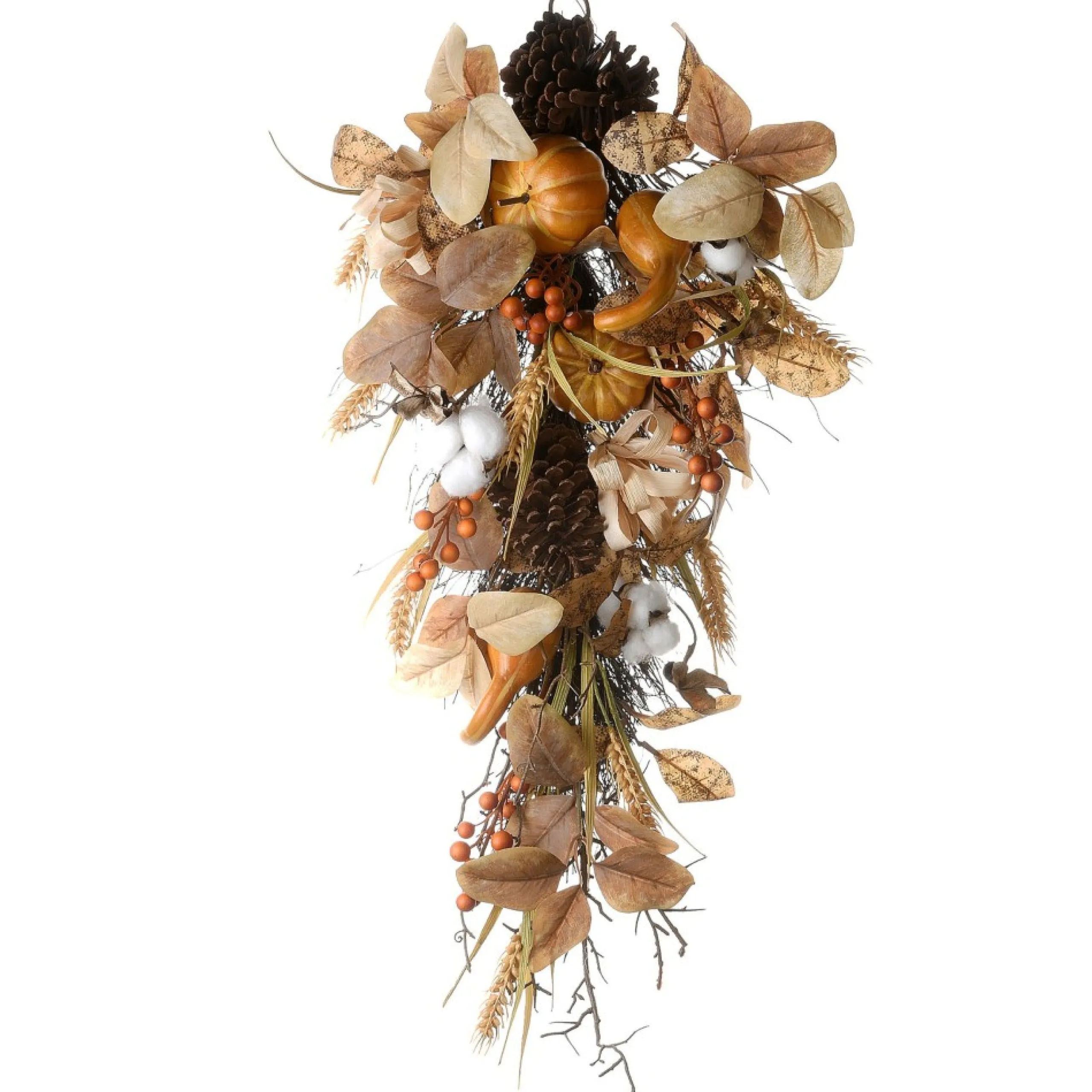 Unlit Teardrops*National Tree Company 30″ Pumpkins, Pinecones And Berry Artificial Fall Harvest Teardrop Swag, Unlit