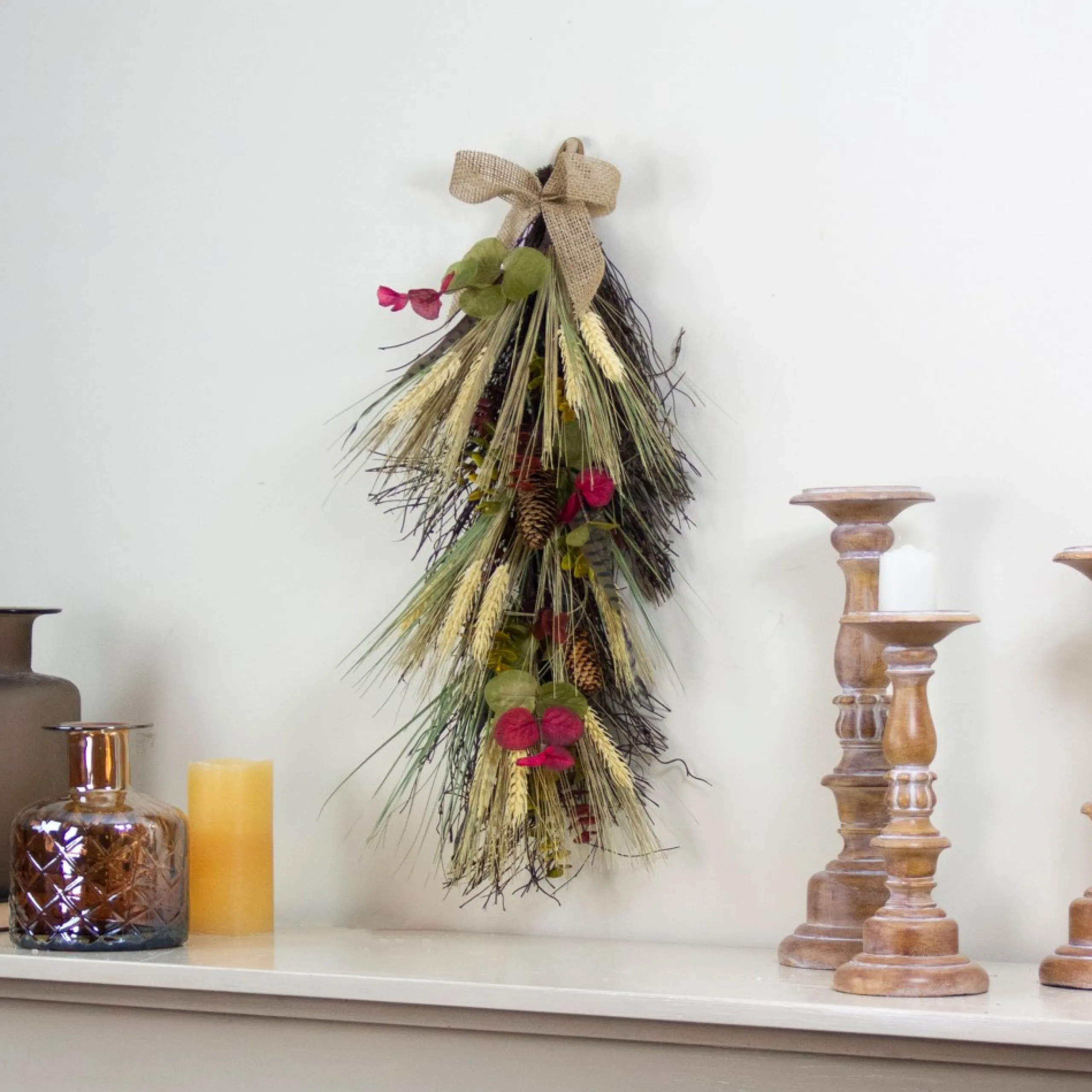Unlit Teardrops*Northlight 24″ Autumn Harvest Wheat And Eucalyptus With Feathers Teardrop Swag – Unlit