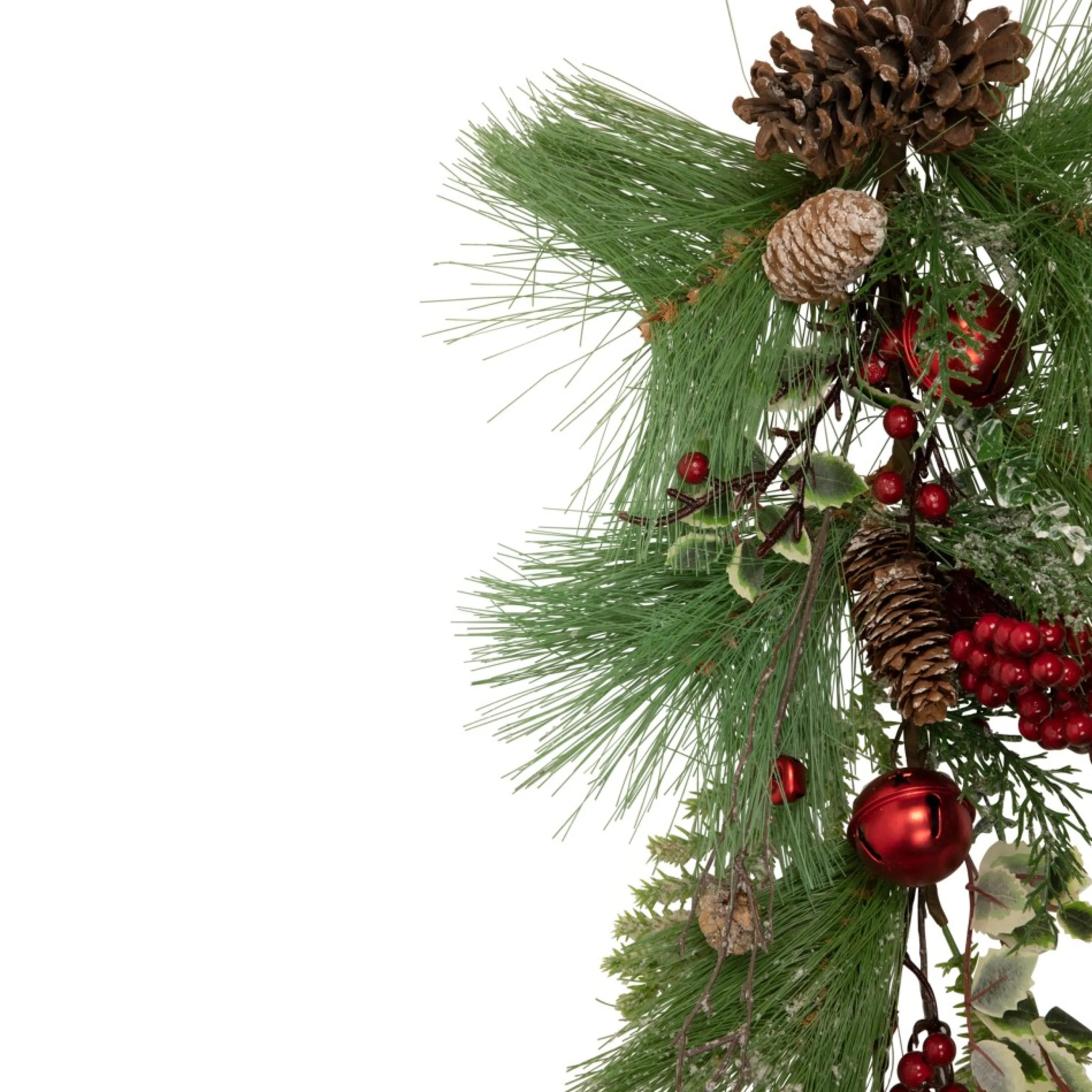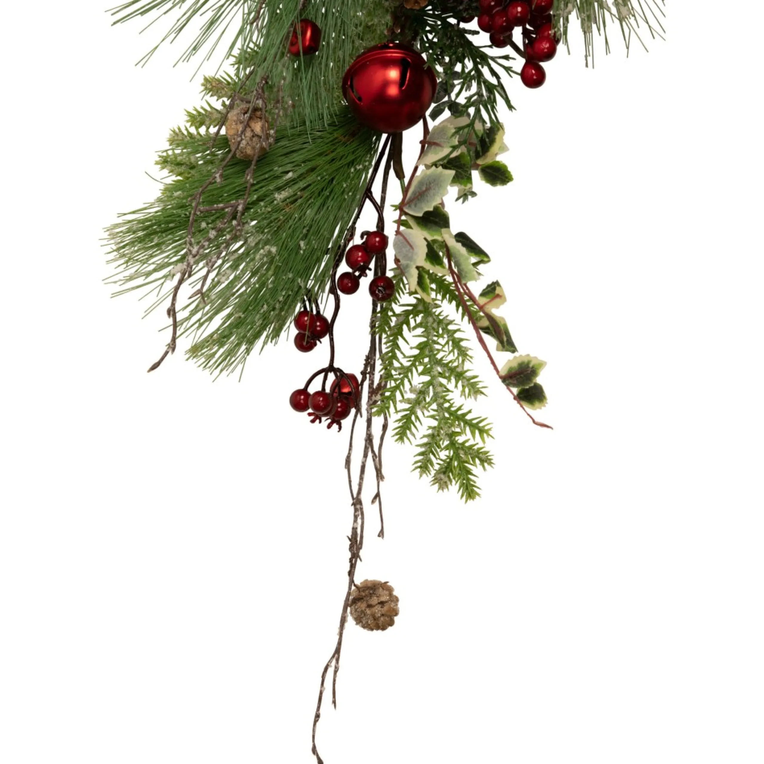 Bursting With Bright Red Berries, Jingle Bells And Pine Cones, This Teardrop Swag Adds Color And Style To Your Christmas Decor. The Lush Mixed Greens Are Lightly Frosted For That Special Holiday Feel. Hang On A Door To Hear The Jingle Bells Every Time Someone Enters.