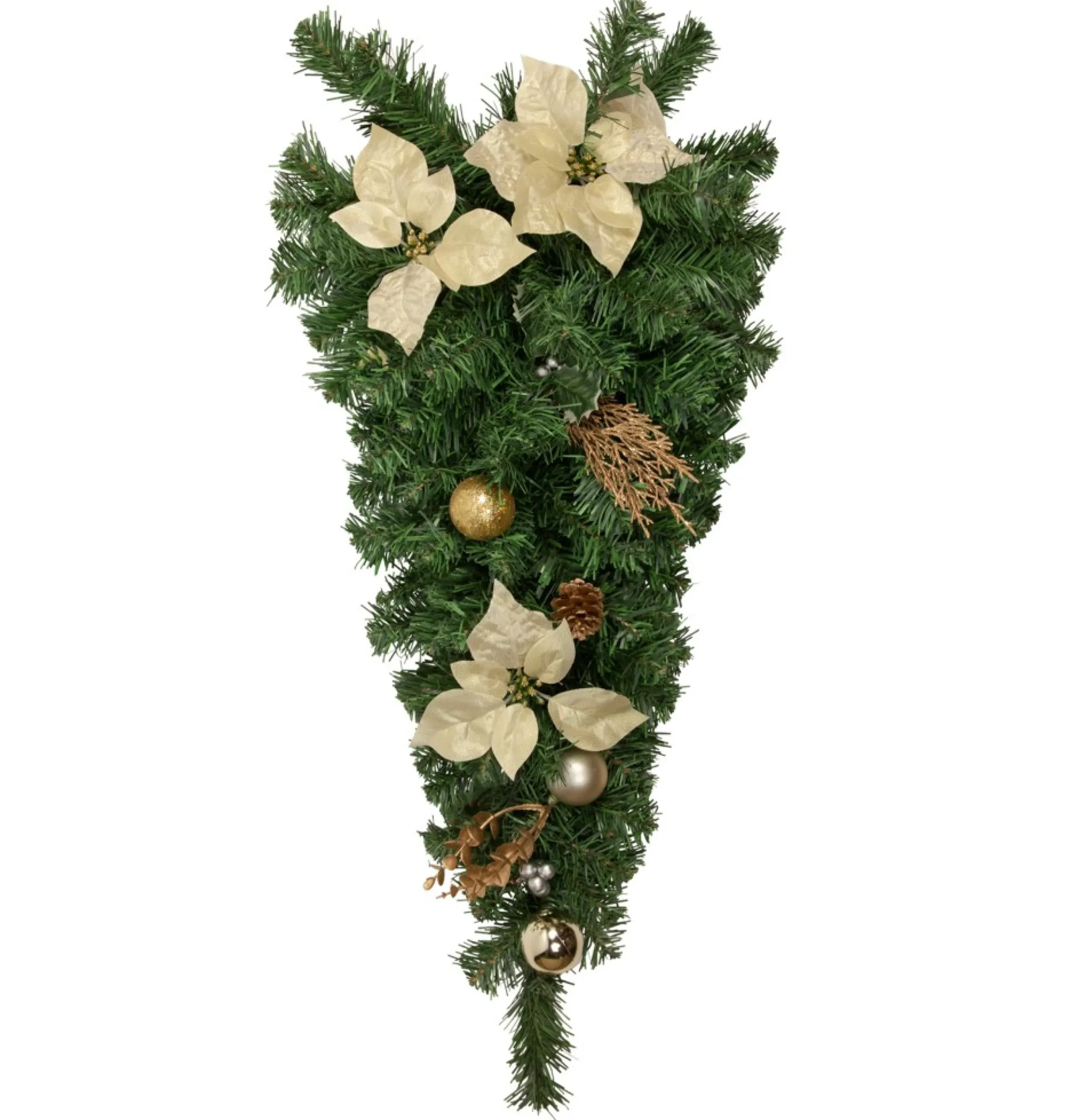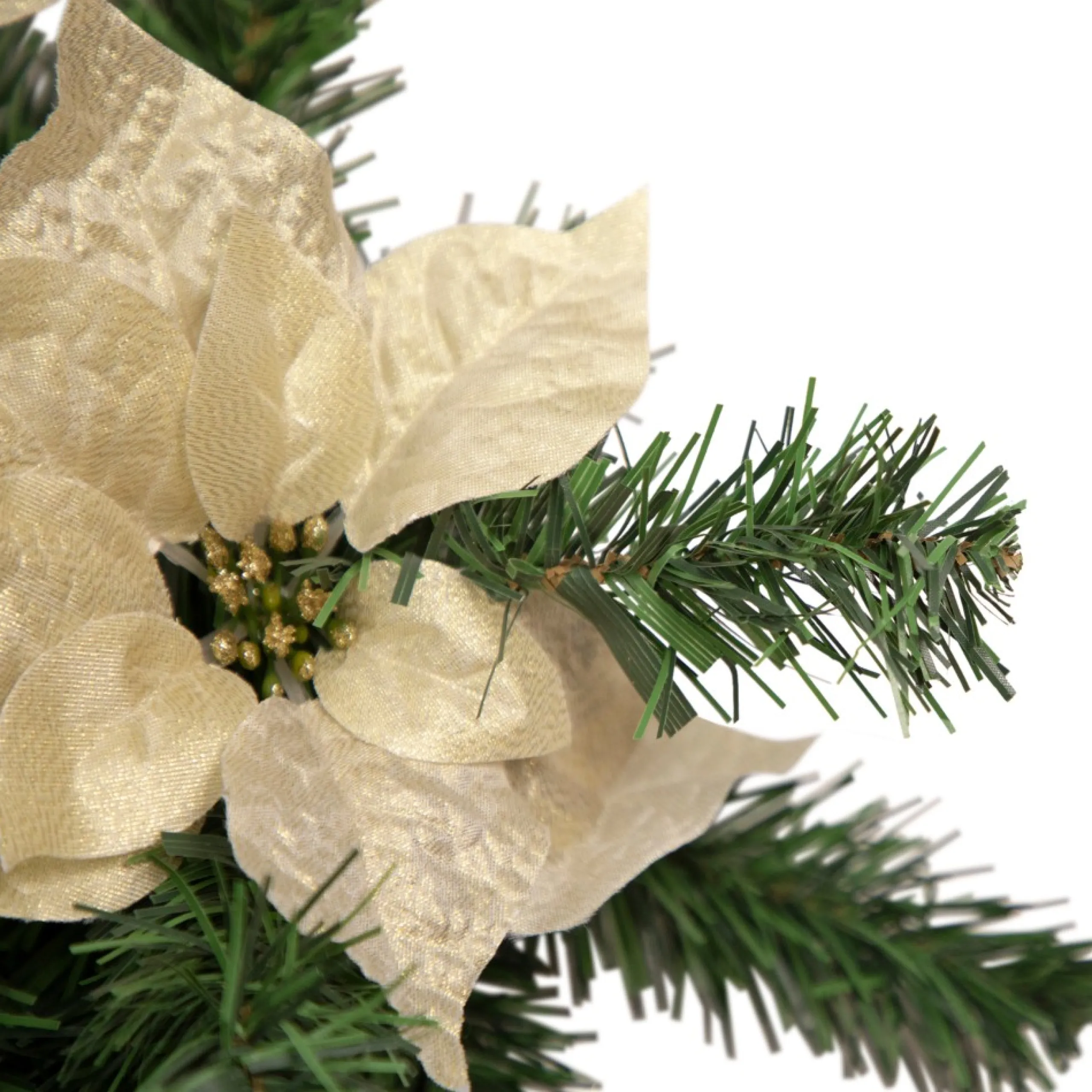Unlit Teardrops*Northlight 32″ Gold Poinsettia Artificial Christmas Teardrop Swag, Unlit