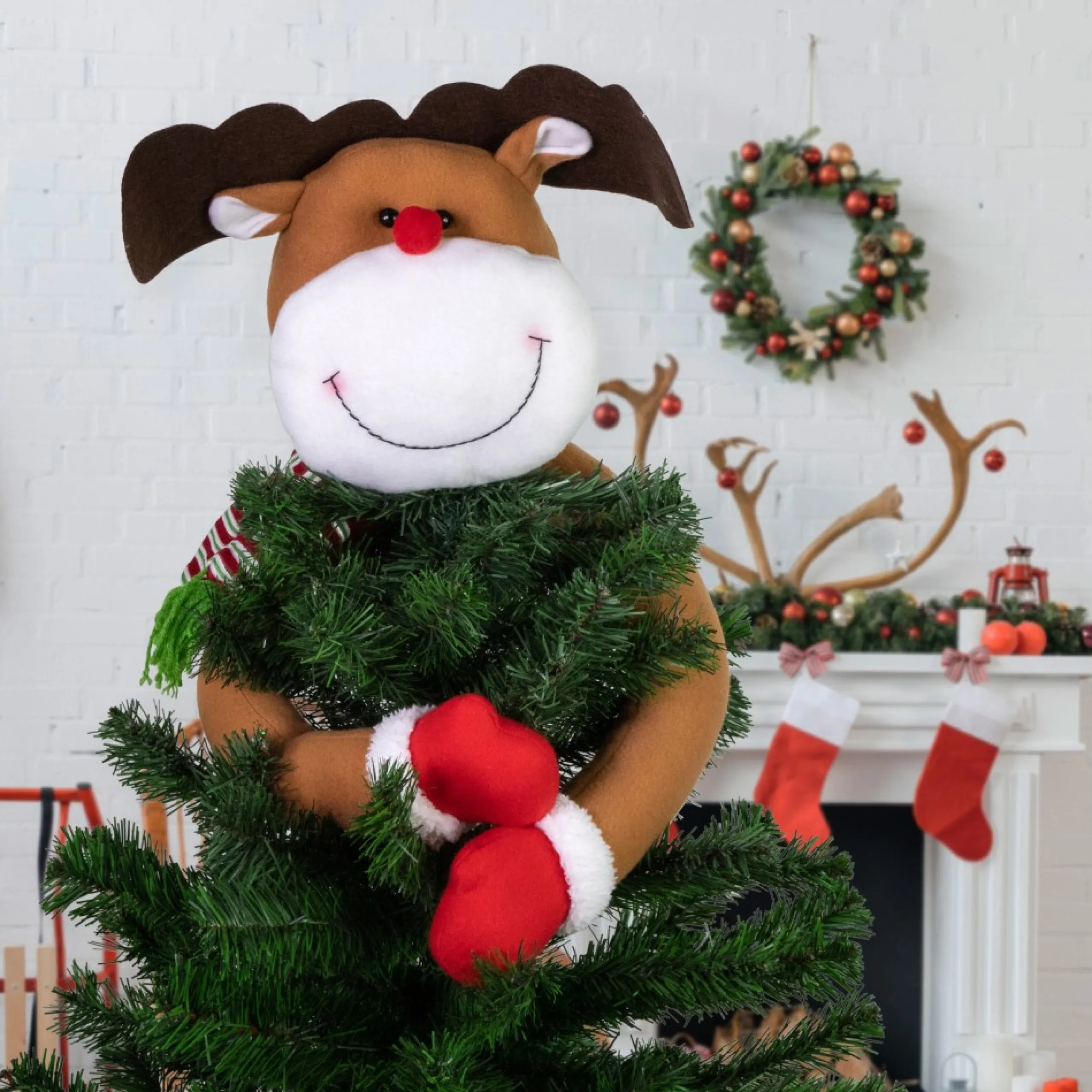 Unlit Tree Toppers*Northlight 26″ Plush Reindeer Christmas Tree Topper, Unlit