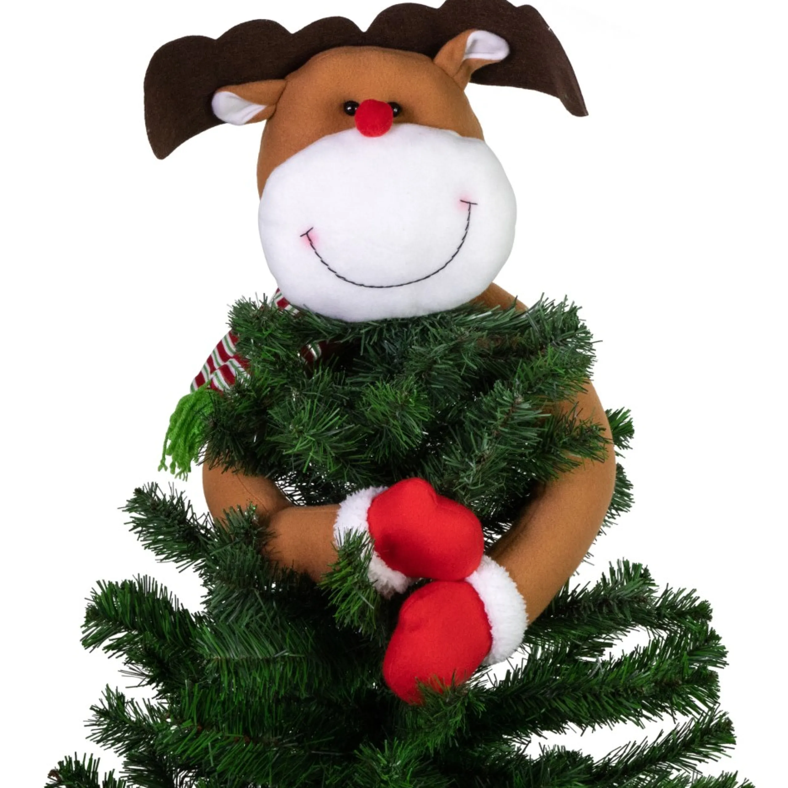This Joy Filled Tree Topper Brings The Merriment Of The Christmas Season To Life. What Sets This Tree Topper Apart Is Its Bendable Design, Allowing You To Position The Reindeer’s Legs In Different Poses For The Perfect Look. The Plush, Lightweight Construction Attaches To The Top Of Your Tree, A Great Fit For Any Size Christmas Tree. With The Reindeer Depicted With Big Brown Antlers And A Striped Scarf, This Tree Topper Is Sure To Be An Admired Part Of The Holidays For Years To Come.