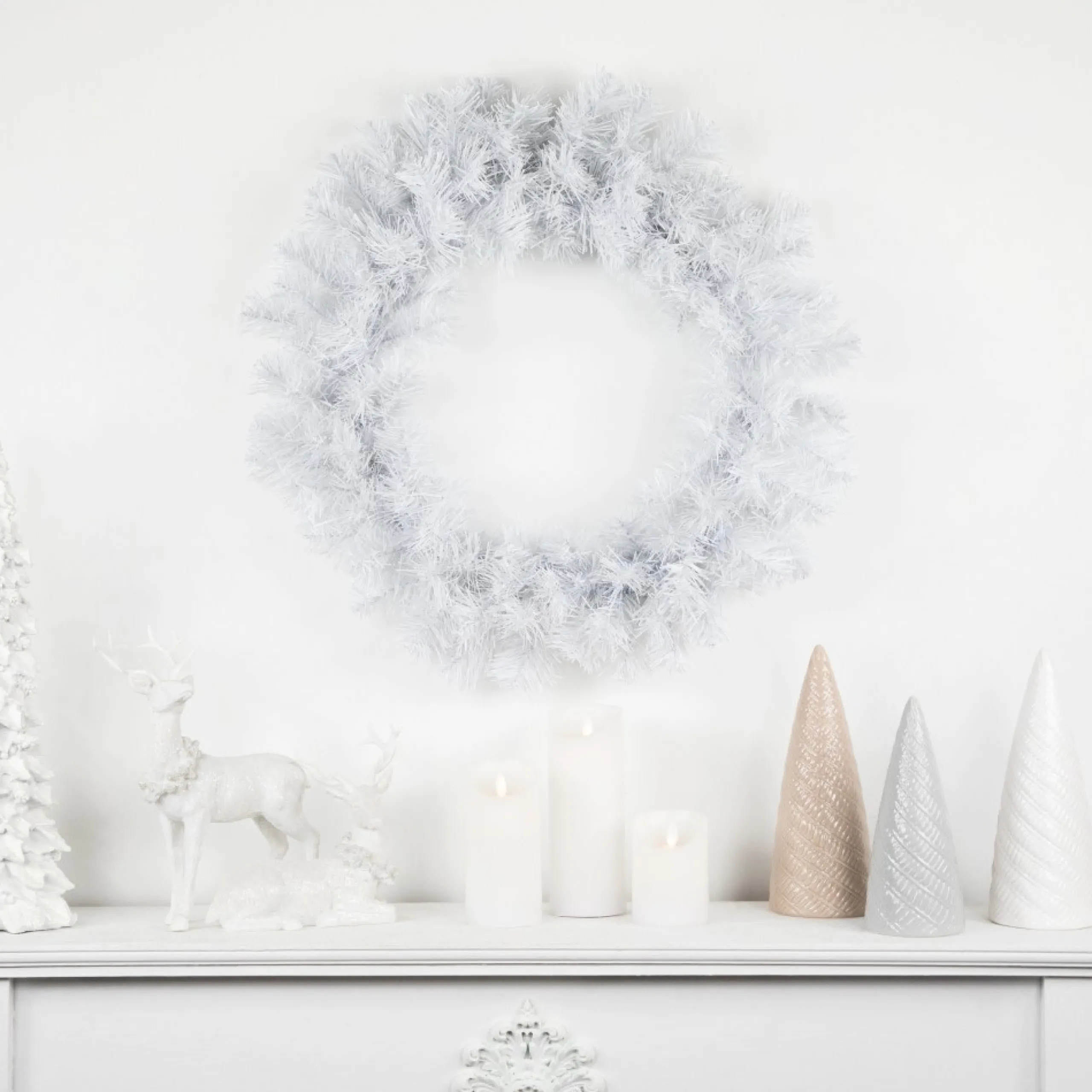 Unlit Wreaths*Northlight 24″ White Crystal Spruce Artificial Christmas Wreath – Unlit