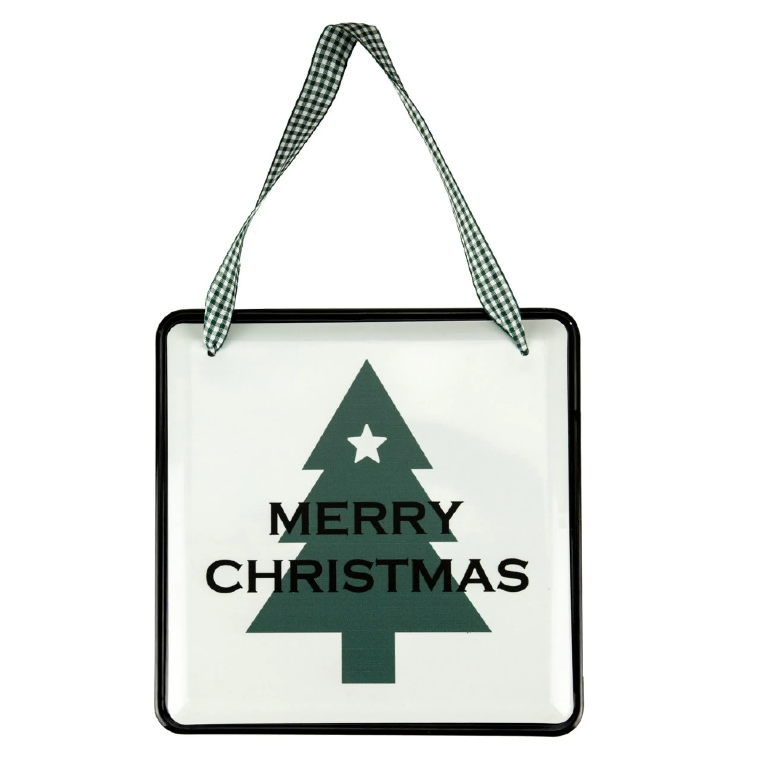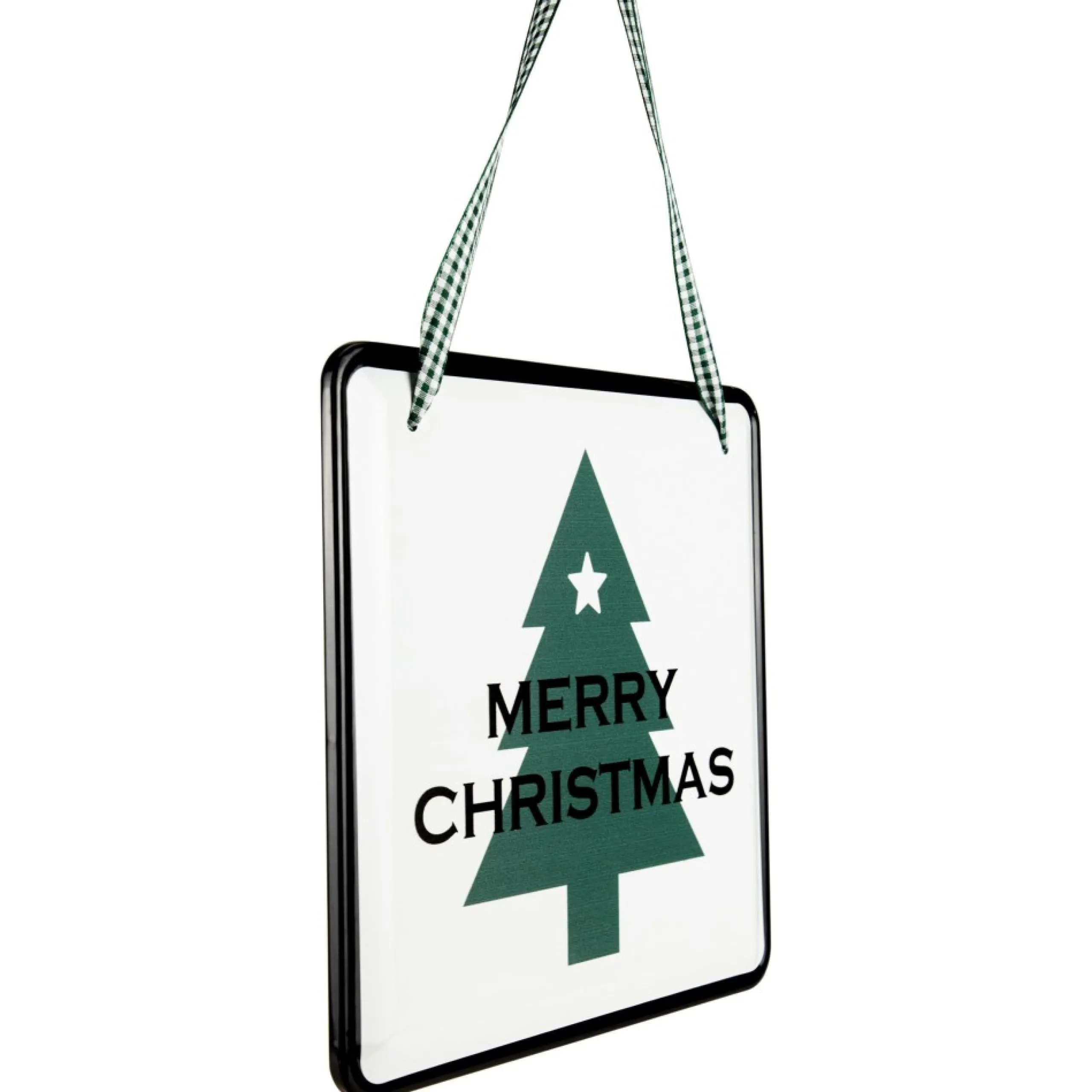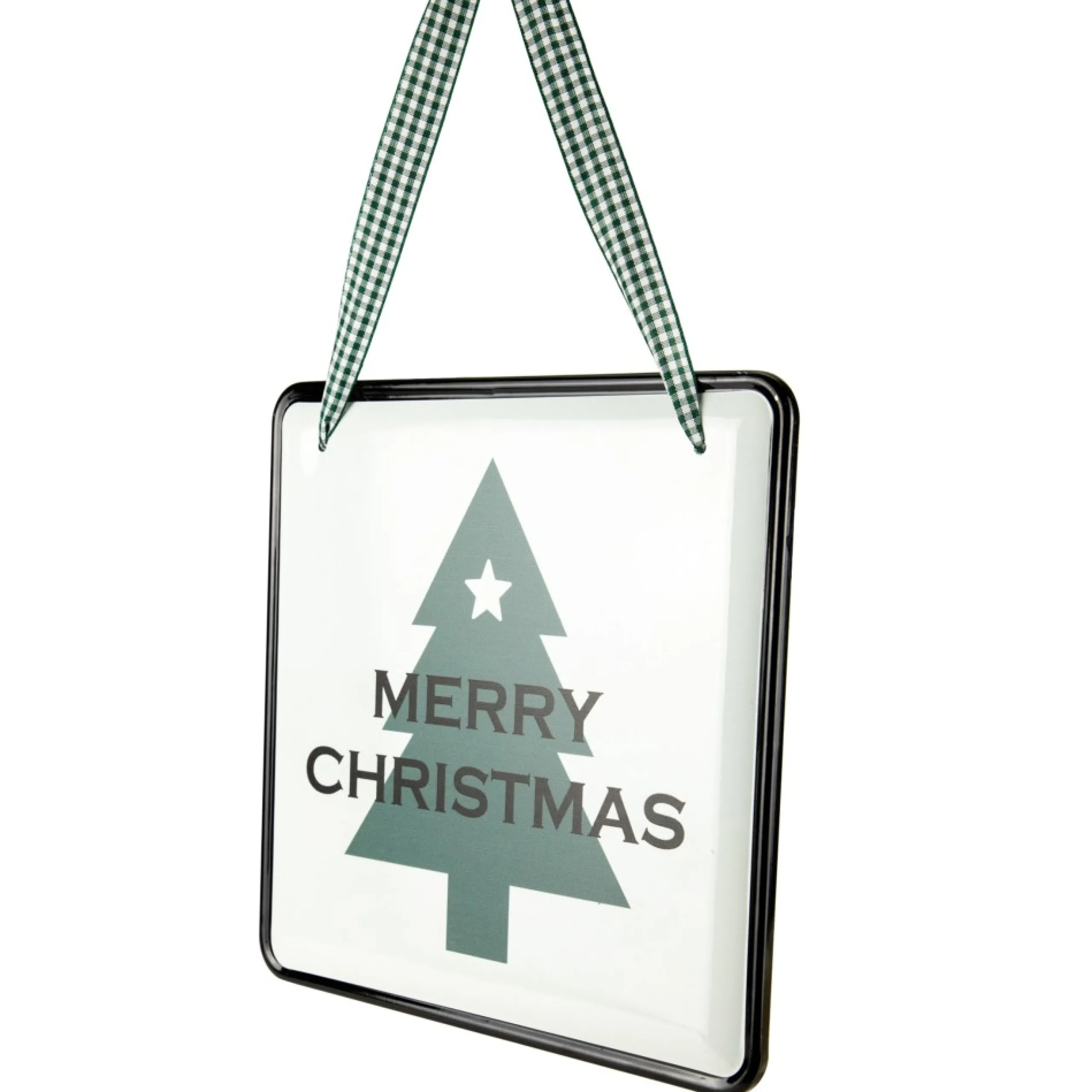 Wall & Door Decorations*Northlight 8″ Merry Christmas Metal Wall Sign With Green Check Ribbon