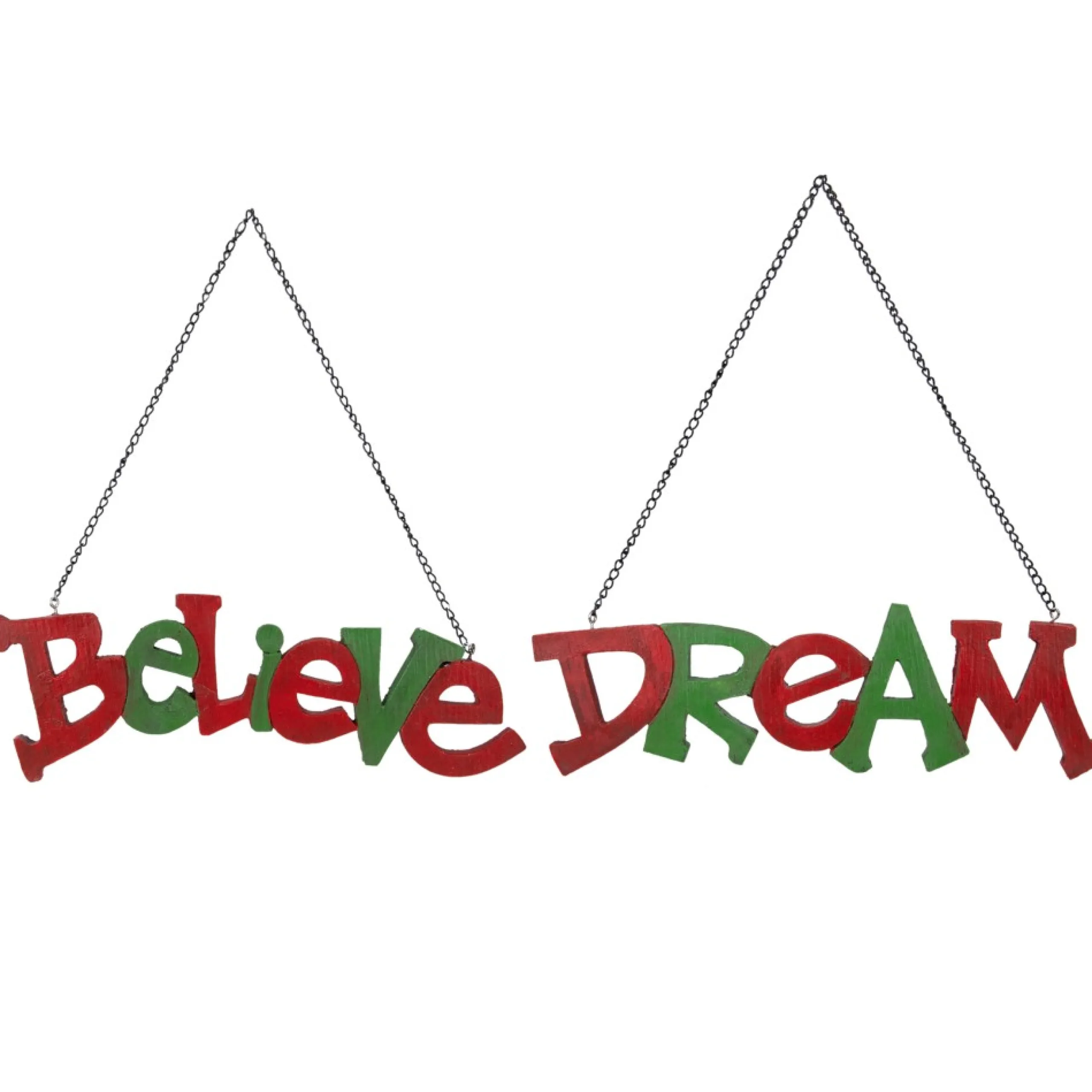 Wall & Door Decorations*Northlight 9.5″ Red And Green Hanging “Believe’ And “Dream” Christmas Wall Decoration 9.5″
