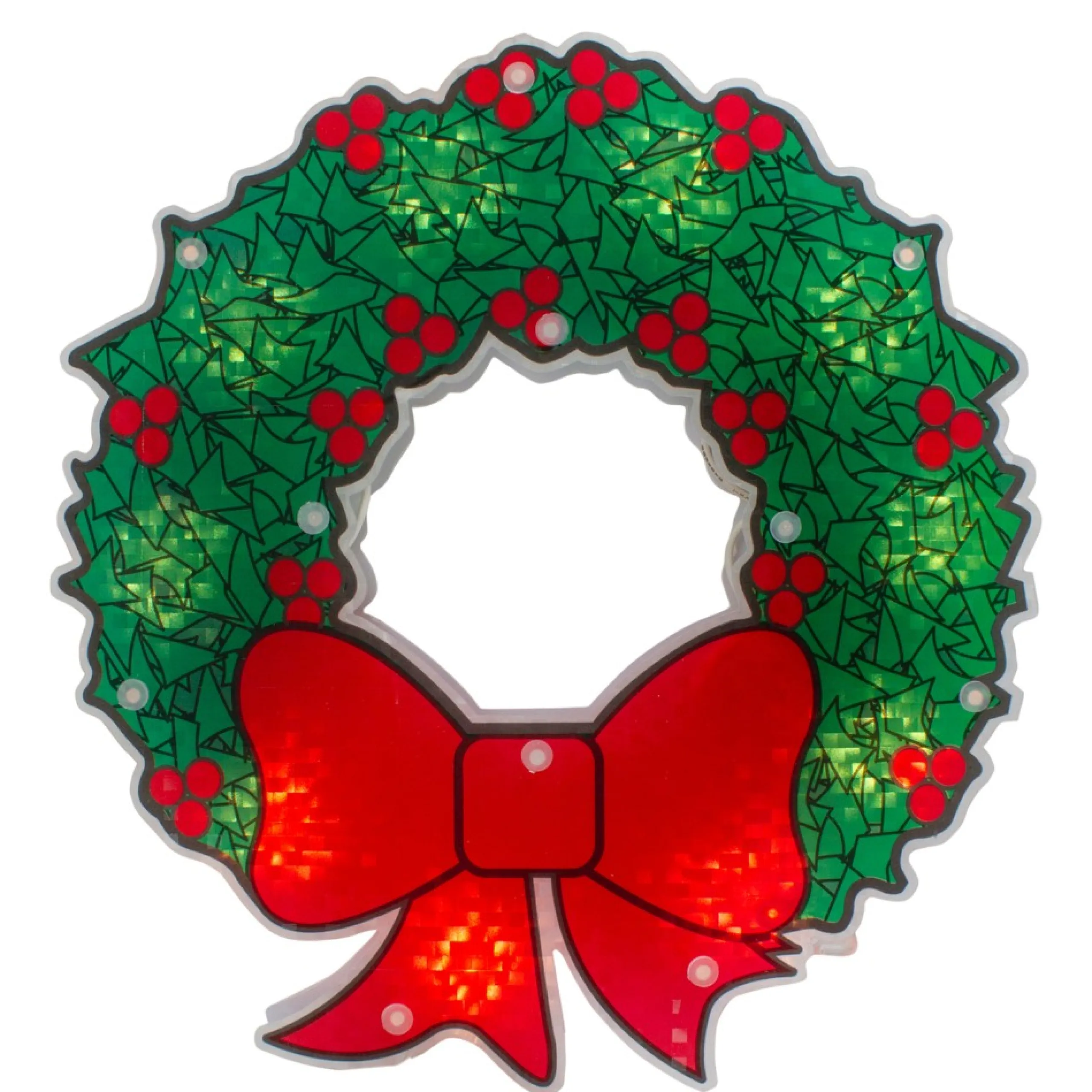 Window Decorations*Northlight 11″ Green And Red Lighted Wreath Christmas Window Silhouette Decoration