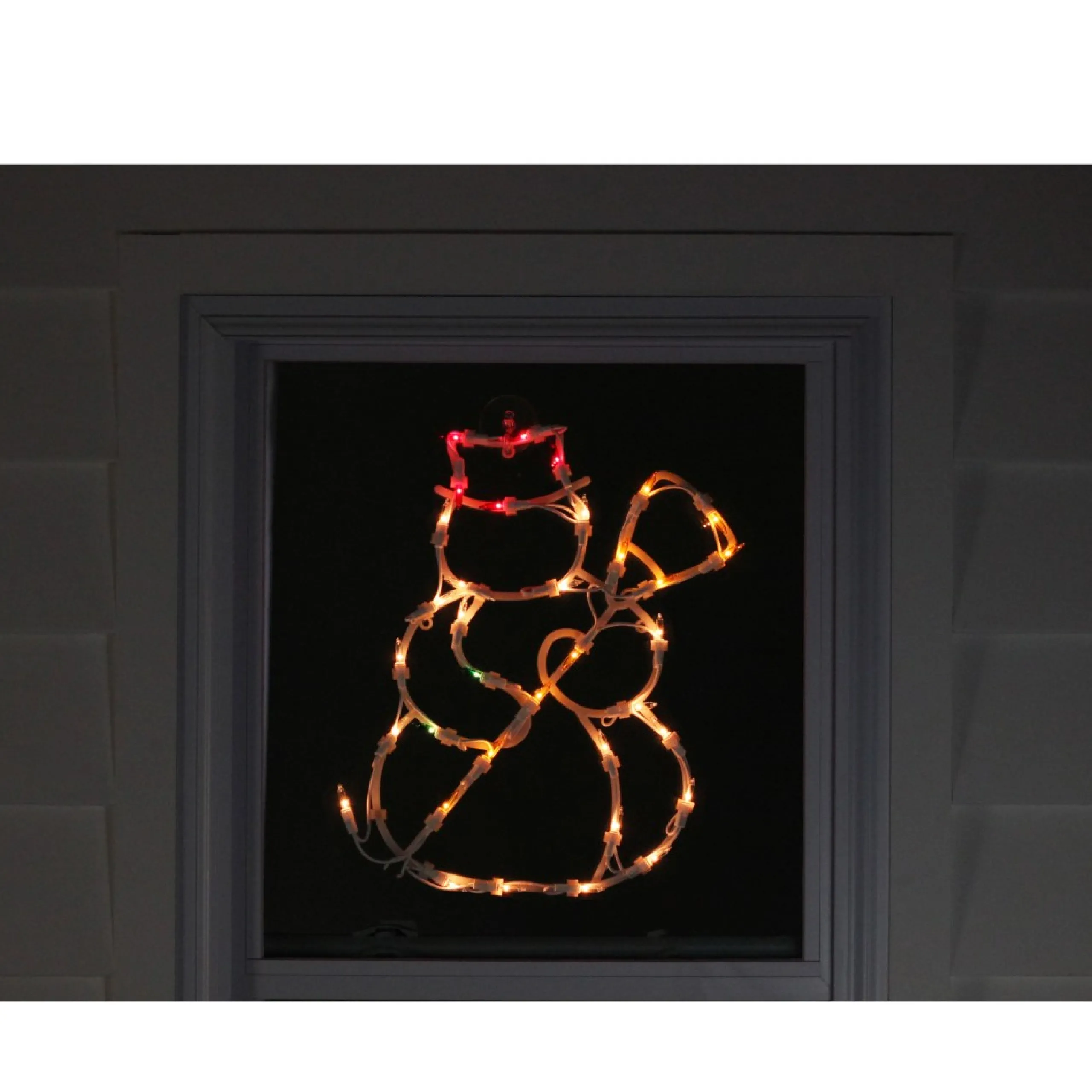 Window Decorations*Northlight 15″ Red And Yellow Lighted Snowman Christmas Window Silhouette Decoration