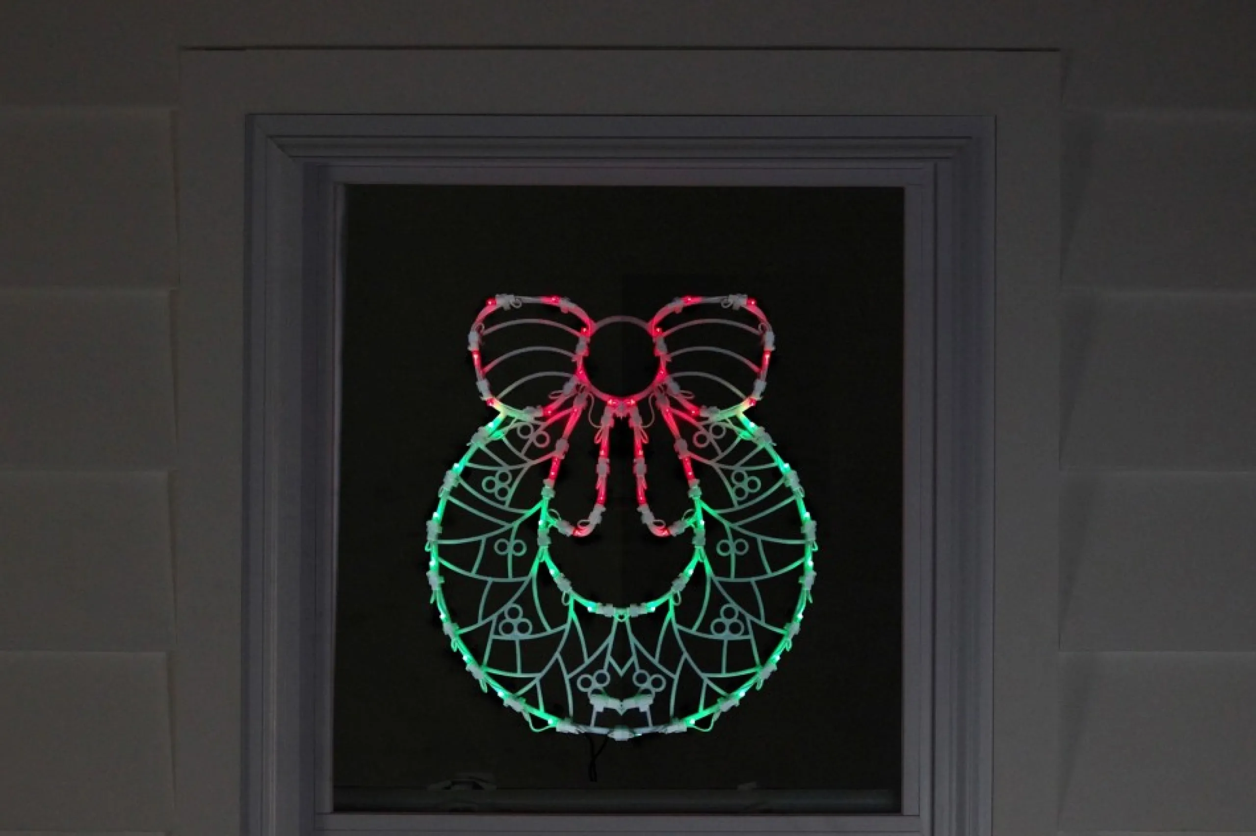 Light Up Your Home This Holiday Season With This Wreath And Bow Window Silhouette. The One-Piece Construction Makes It An Easy Way To Add A Festive Touch To Your Decor. Designed For Windows, But Also Great For Walls, Doors, And Mantles.