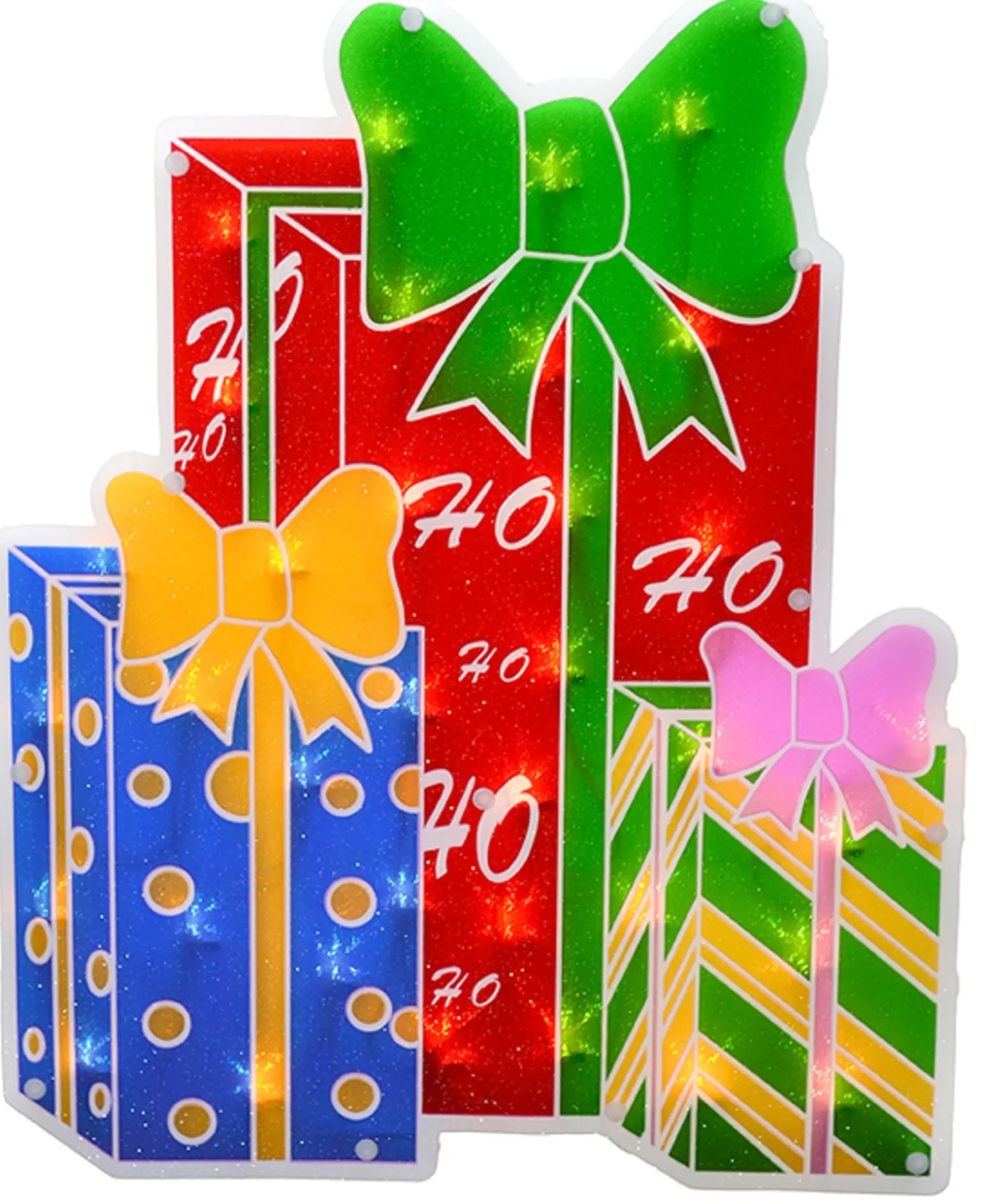 Window Decorations*Northlight 17″ Green And Red Double-Sided Lighted Holographic Shimmering Christmas Presents Window Silhouette