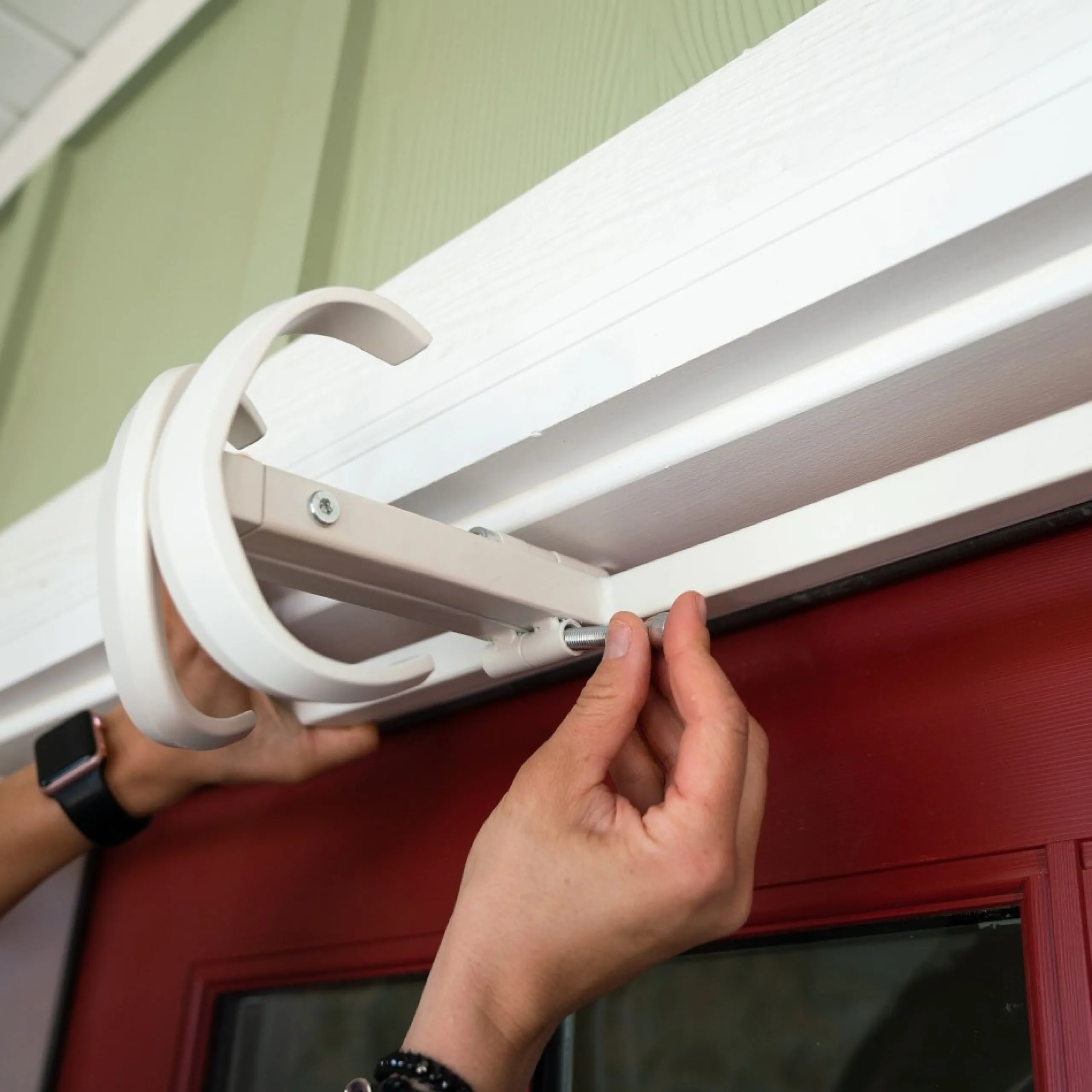 Hanging A Garland Above Your Wreath On Your Single-Door Front Door Gives Your Home The Grand Entrance You Deserve During The Holidays, But Damaging Your Home With Nails Leaves A Terrible View For The Rest Of The Year. This Patented Garland Hanger Allows You To Hang Garland Around Your Front Door Without Damaging Your Home With Nails Or Screws. The Hanger’s Width Is Adjustable To Fit Door Frames Between 34 In. – 52 In. Wide. Designed To Prevent Damage To Your Door Frame, The Garland Hanger Uses Pressure To Hold Garlands Up To 20 Lbs. Up In Your Door Jam. Complete With Rubber Pads On Each End Help Ensure That Your Door Frame Is Protected, And A Durable Powder Coating To Prevent Rusting Of The Hanger.